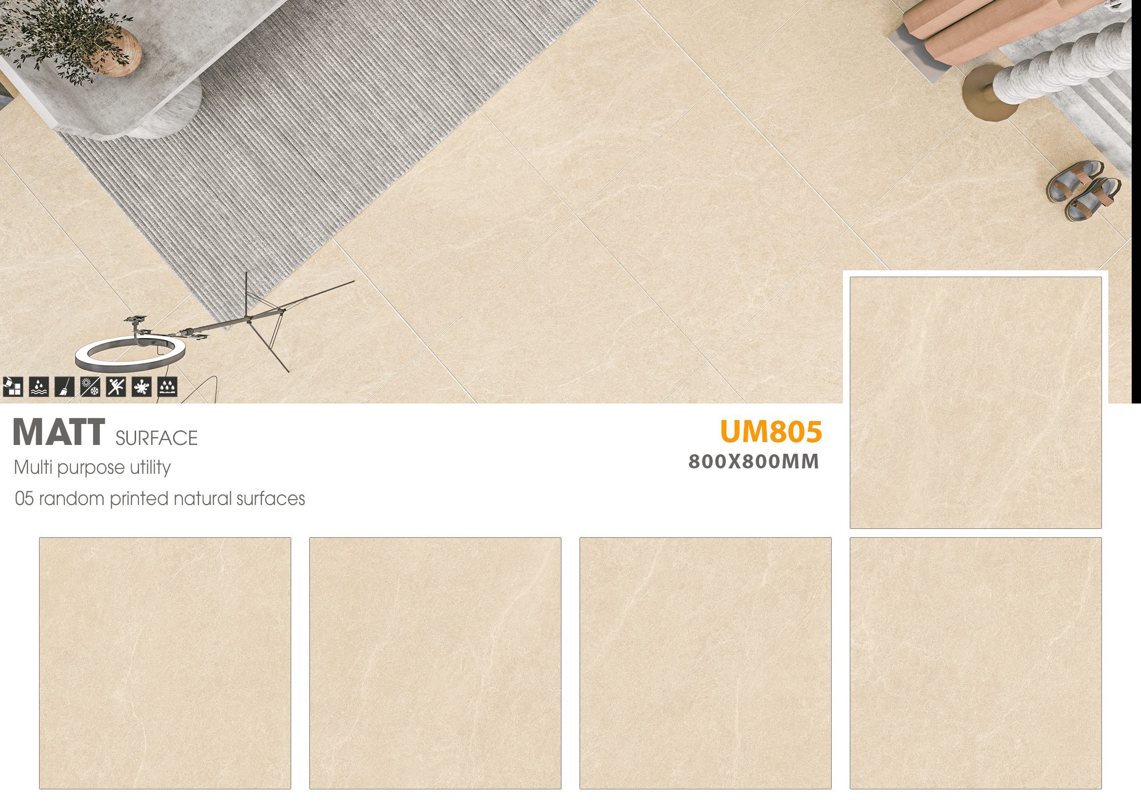 - Bề mặt: Men Mờ với 5 mặt vân tự nhiên